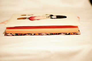 Блокнот формата А5, полностью ручной работы. Странички розовые и желтые, форзацы соответственно, тоже: розовый и желтый. Обложка мягкая за счет синтепона (Анечка, спасибо). Обложку я сшила из канвы равномерного переплетения, тонированной кофе и украшенной вышивкой, и хлопком (осталсяе кусочек от летнего платья). К блокнотику добавила закладку-ленточку.